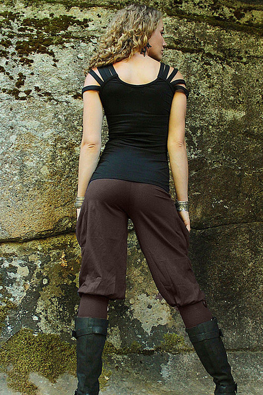 Wooden buttons adorn the tight band that hugs each calf. They are just snug enough around the hips to define the figure and accentuate the female form, while remaining completely comfortable.